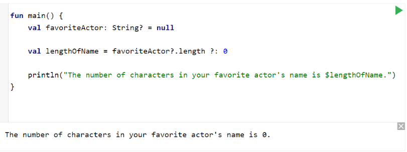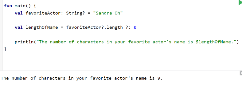 - 변수가 null이면 ?: 앞의 표현식이 실행되고 아니면 ?:뒤 표현식 실행