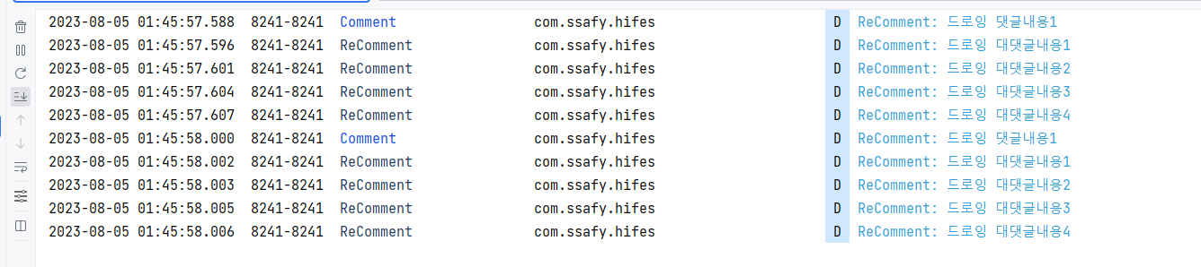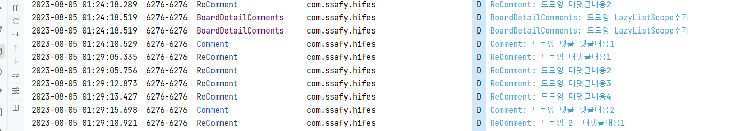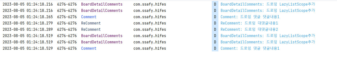 그리고 살살 내려보면 화면에 대댓글이 보여지는 순간에 그려져서 로그가 찍힌다
