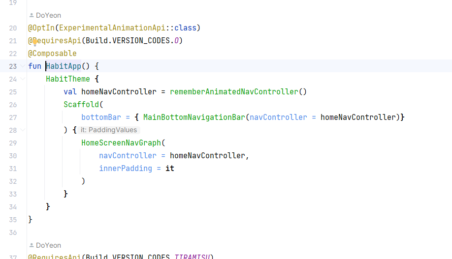 (참고로 AnimatedNavHost는 넣으면 화면이동할때 애니메이션 주기 좋다고 해서 했는거고 그냥 NavHost여도 같음 바텀 네비게이션 처리는)