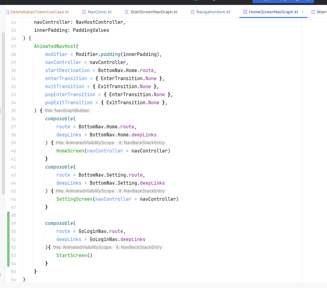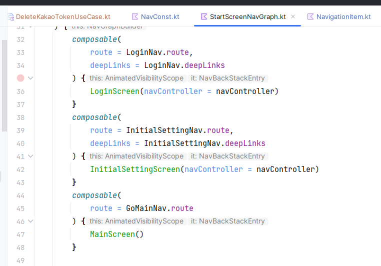 routes뭔가 .. 이렇게 하드코딩 식으로 값을 넣고싶진 않았는데 아직 코틀린 바보라서 그냥 저렇게 때려넣음
