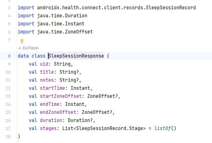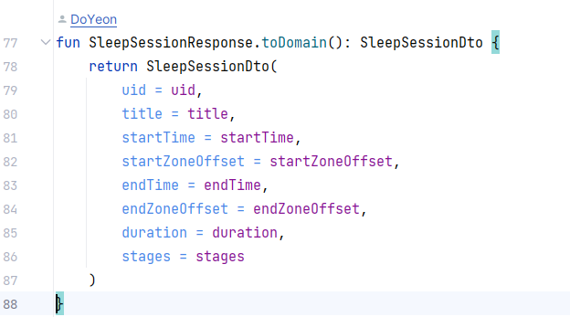 그리고 도메인쪽 디펜던시에 안드로이드 관련된거 없어야된다던데 나는 수면 데이터 가져오는 부분 때문에 health connect를 디펜던시에 넣음 근데 다시 살펴보니 없어도 될것 같기도하다 물론 그 부분을 위한 데이터 클래스를 새로 하나 더 만들어야된다...