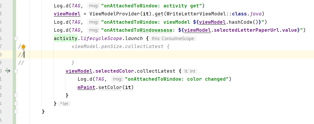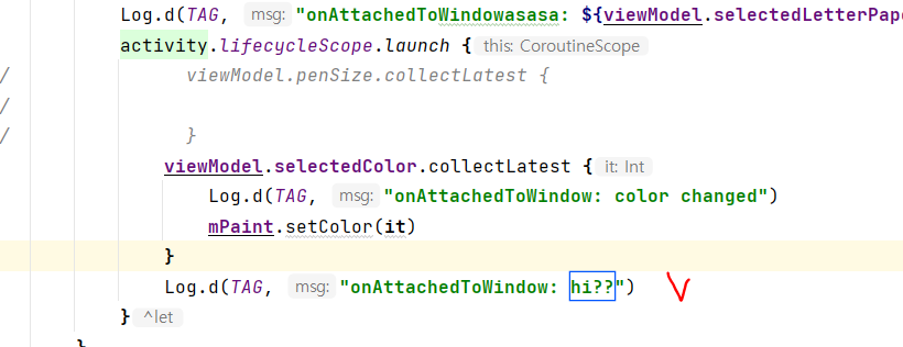 근데 viewModel에서 값이 바뀌는것까지 다 확인을 했는데 저 color changed가 로그가 안찍혔다...