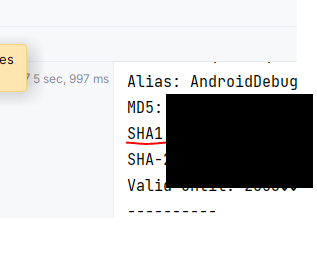 이때 복사해둔 sha1 값과 패키지이름을 넣는다.