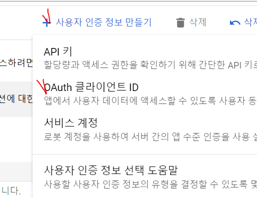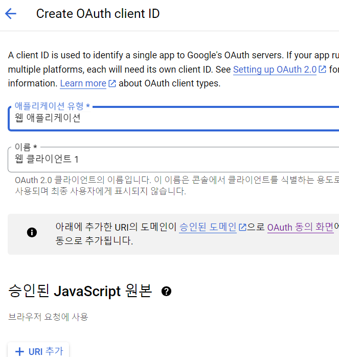 웹 어플리케이션으로 하고 클라이언트 id를 만든다