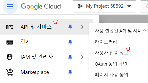 1. 구글 클라우드 콘솔에 들어가서 프로젝트를 만듭니다.
