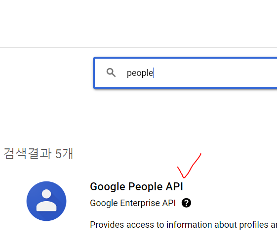 그리고 구글 클라우드 콘솔에서 people api 사용설정을 해야 한다